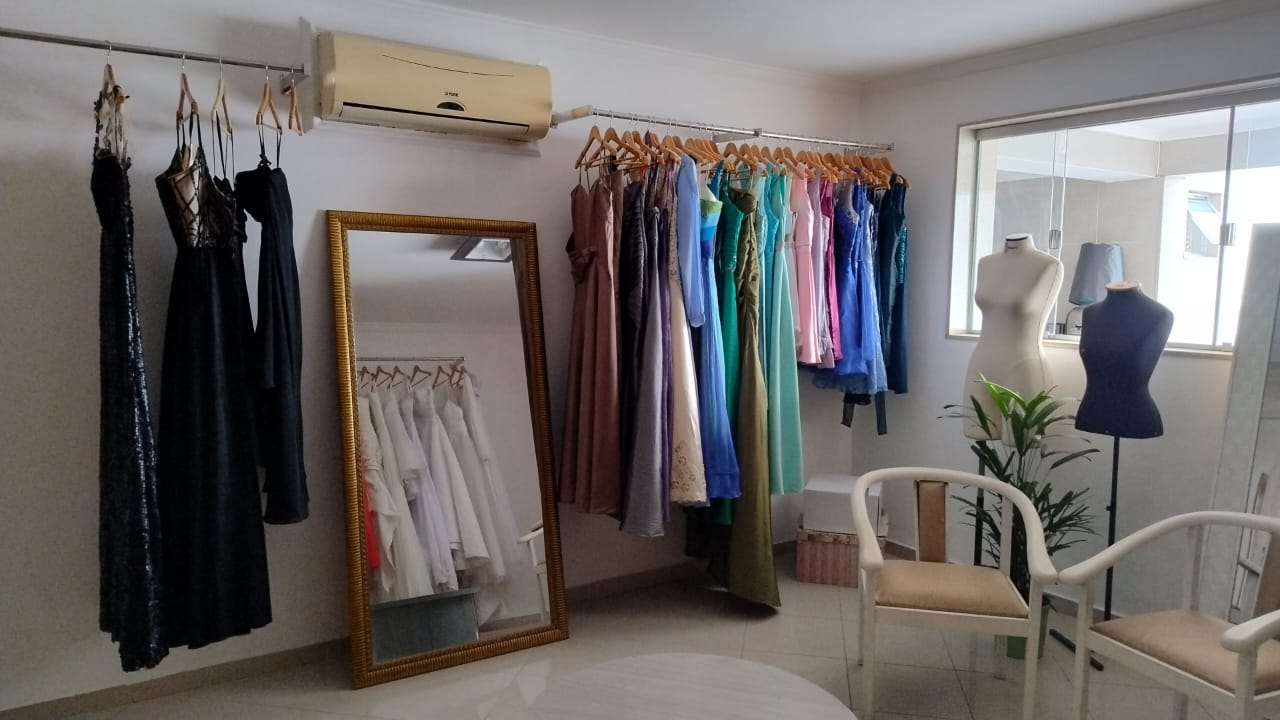 Mantemos em nosso Atelier um stock permanente de roupas de festas femininas para locação.